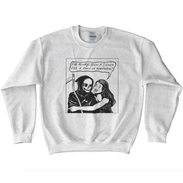 Printed on Gildan sweatshirts.